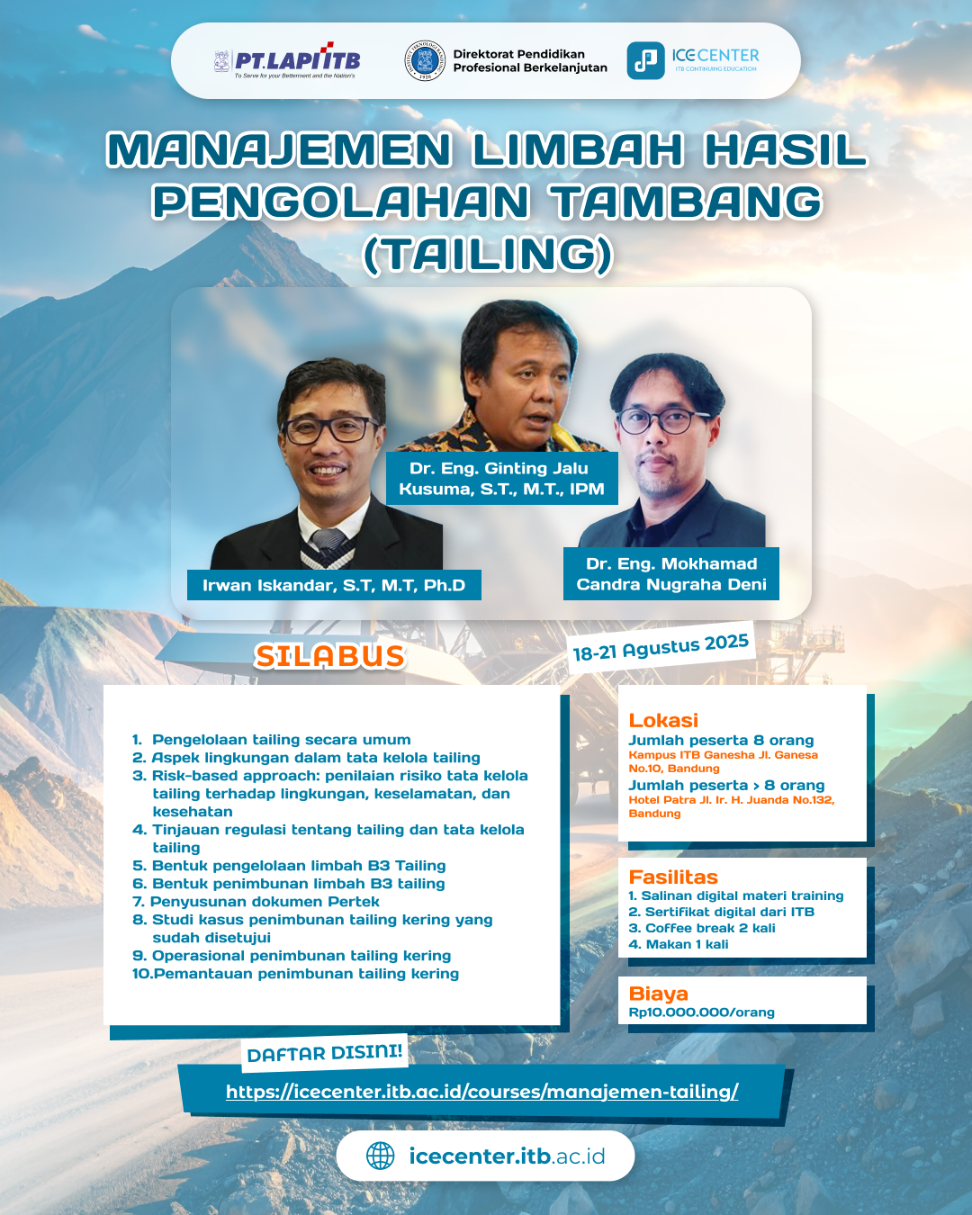 Public Training: “Manajemen Limbah Hasil Pengolahan Tambang (Tailing)”